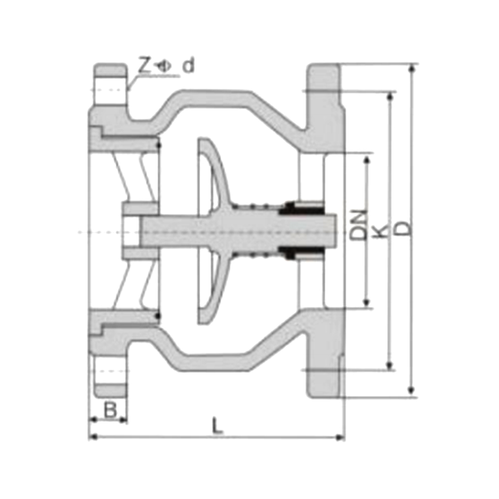 Ang Valve Disc ay ginagabayan ng gitnang axis sa parehong mga dulo ng inlet at outlet, pagbubukas at pagsasara ng kakayahang umangkop, at maaaring mai -install nang pahalang o patayo. Ang valve disc ay puno ng tagsibol, at ang mabilis na pagsasara nito ay maaaring epektibong mabawasan ang presyon ng martilyo ng tubig, na may mahusay na pagganap ng sealing at walang ingay kapag nagsasara. Magsuot ng buhay at mahabang buhay ng serbisyo. $